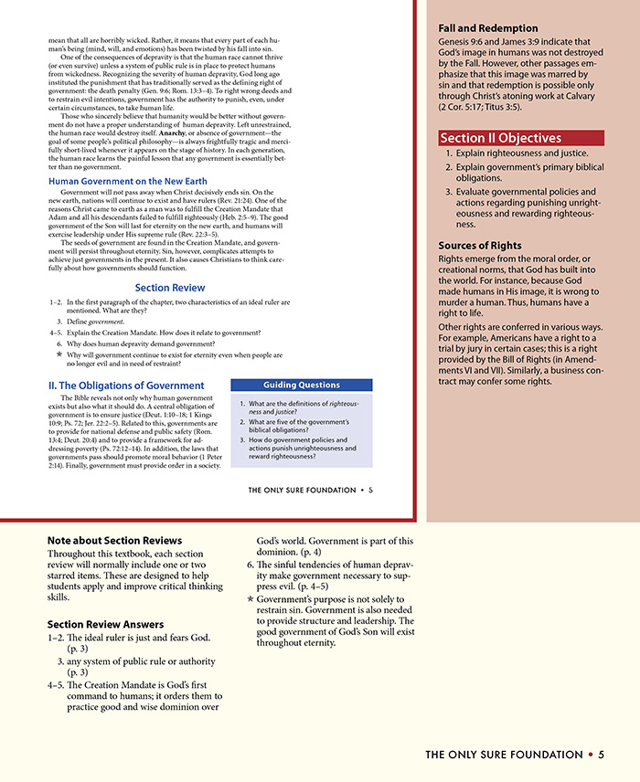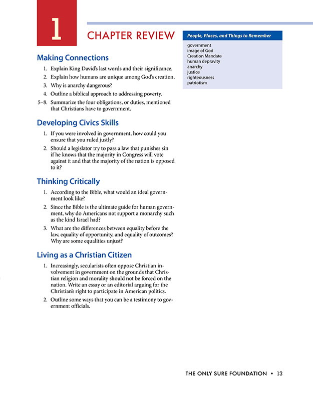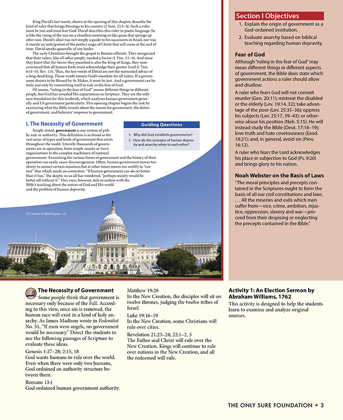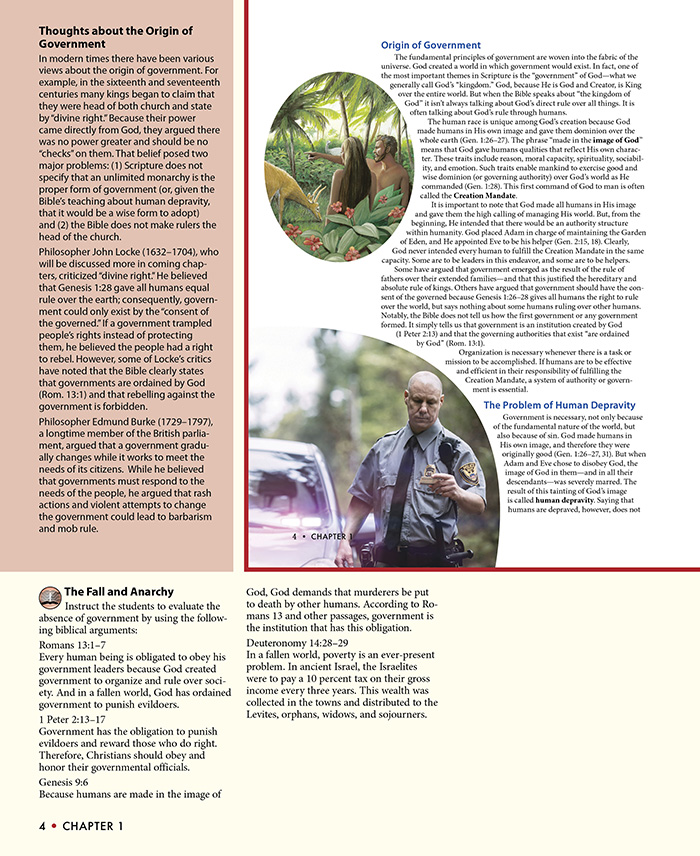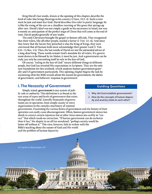 The 4th edition of American Government contains a new chapter on state and local governments, as well as Christian worldview boxes designed to help students think Scripturally and critically about governmental issues.