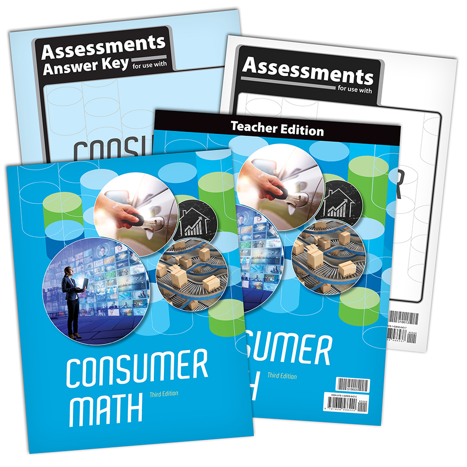 Consumer Math, 3rd Edition from BJU Press helps students develop the knowledge and skills they need to successfully handle their personal finances. Topics include developing a budget, filing taxes, and planning a vacation. Stewardship & Scripture features encourage students to view their handling of money in light of scriptural teaching.