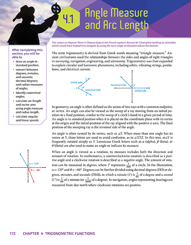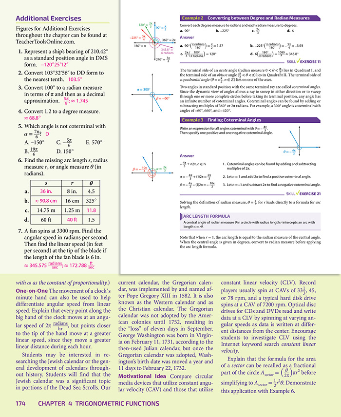 Lessons in Precalculus thoroughly develop key concepts, provide detailed examples to promote student comprehension, and integrate practical applications. Exercise sets include three levels of difficulty to allow differentiated assignments. Each section includes cumulative review to help with long-term mastery and to prepare students for standardized tests. Students will have the opportunity to use technology to explore mathematical concepts.