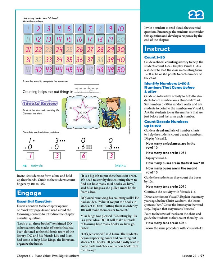 The Math 1 Visuals contains colorful 12 ¼” x 17 ¾” teaching charts to use when teaching lessons and for classroom display.