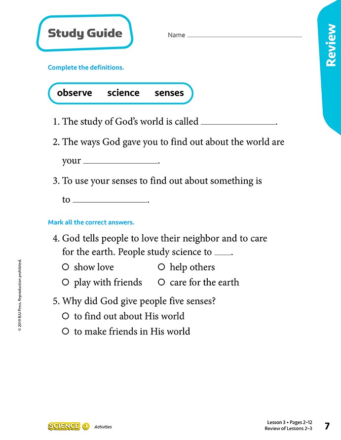 All lessons are presented within a Biblical worldview to help your child develop knowledge of God. Furthermore, the curriculum encourages the development of critical-thinking skills. It is designed to be a one-semester course and contains 69 lessons.