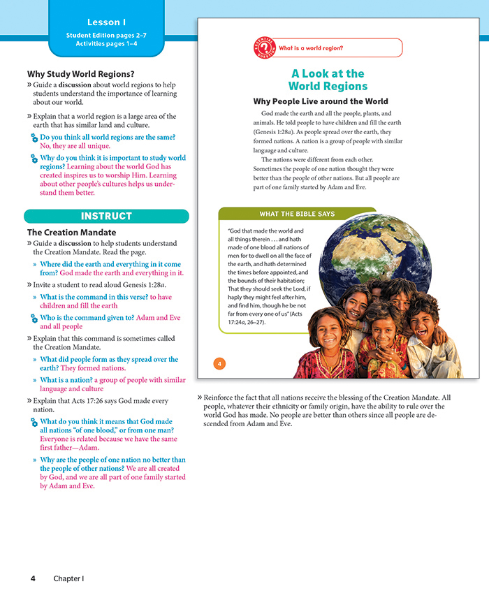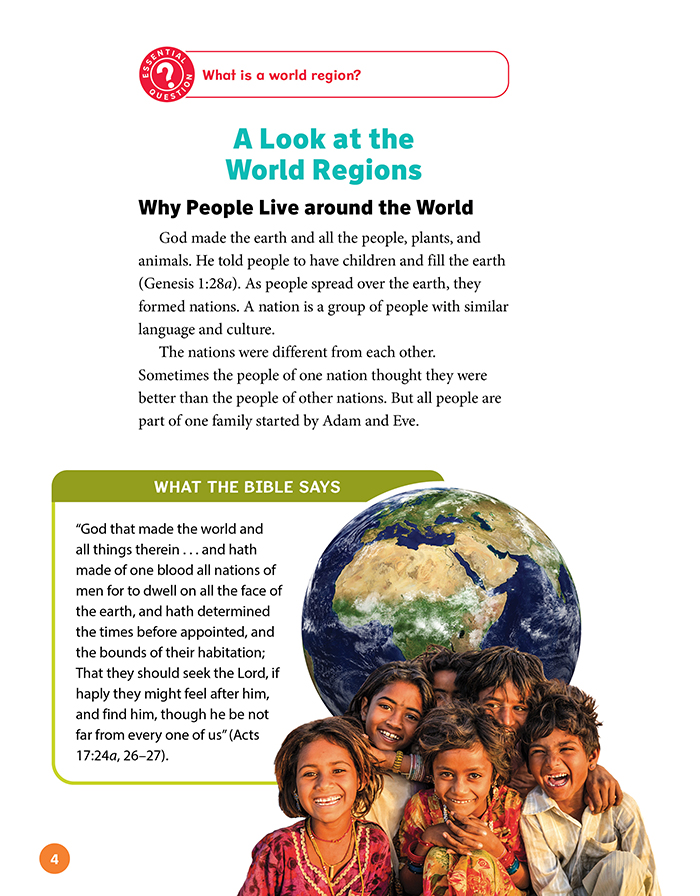 The 3rd grade Heritage Studies  curriculum teaches world cultures from a biblical worldview to help students understand what it means to be responsible citizens. Upon completion of this course, students will be able to