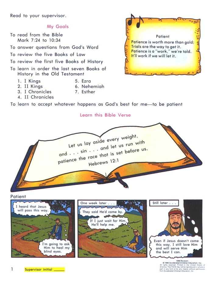 Each ACE School of Tomorrow text is broken down into 12 colorful workbook-style units of study that are presented with a mastery approach. Therefore, students not only receive initial instruction but review each skill and/or principle several times to ensure mastery and retention.