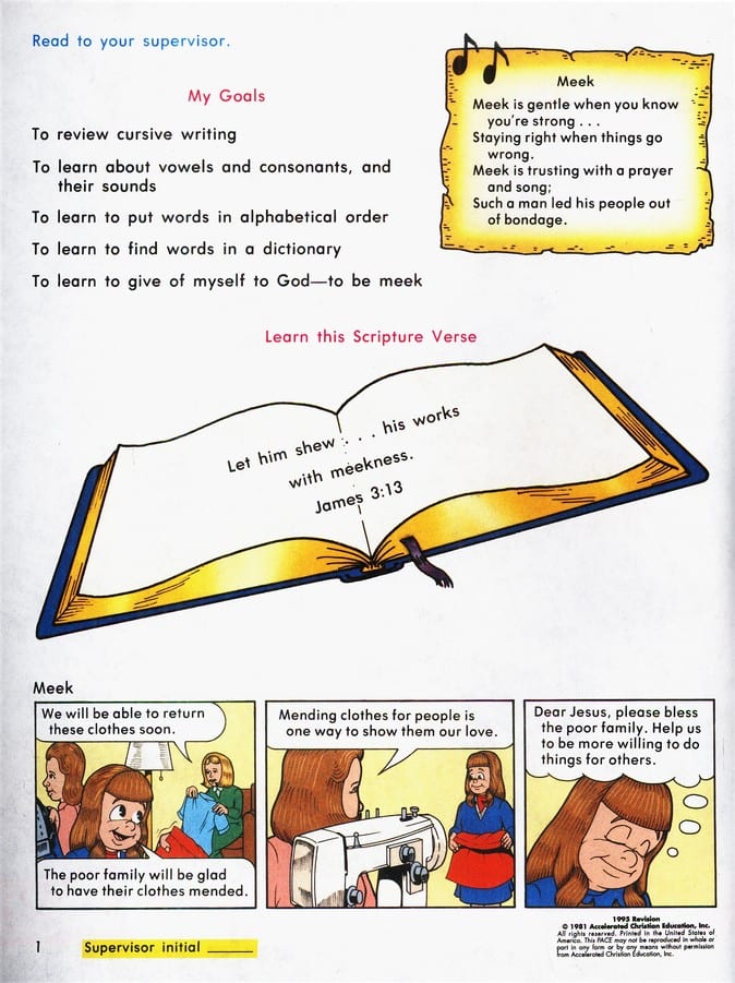 Each Accelerated Christian Education text is broken down into 12 colorful workbook-style units of study that are presented with a mastery approach. Therefore, students not only receive initial instruction but review each skill and/or principle several times to ensure mastery and retention.