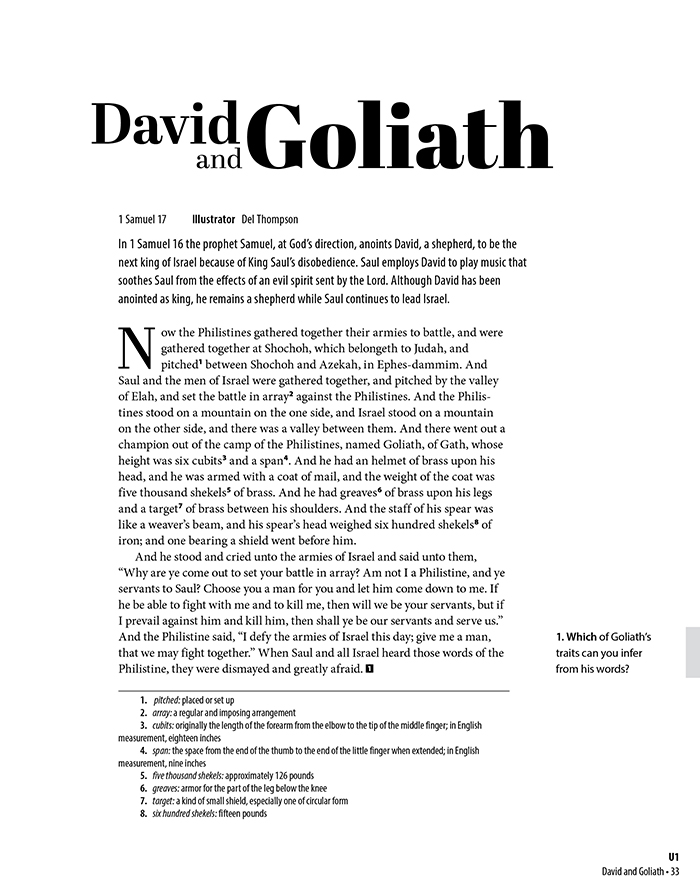 The student edition organizes its reading selections into five different themes. Literature selections within each unit help your students develop a cultural understanding of the themes. General activities and Big Questions will also provide natural opportunities for worldview shaping.
