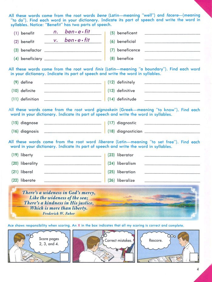8th Grade Word Building Pace Set from Accelerated Christian Education ACE