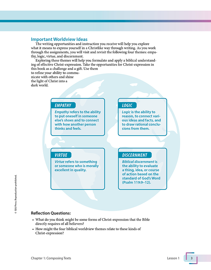 • To apply biblical worldview themes (empathy, logic, virtue, and discernment) to communicative tasks