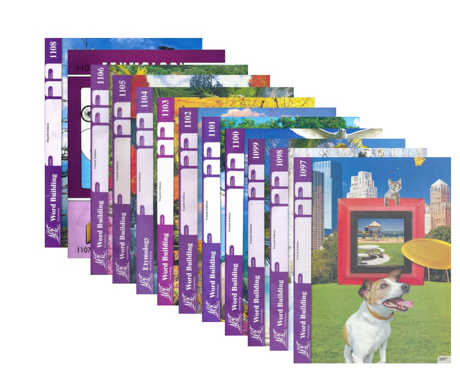 The ACE Etymology Complete Set from Accelerated Christian Education includes all 9th grade Etymology PACEs (1097-1108) and answer keys.