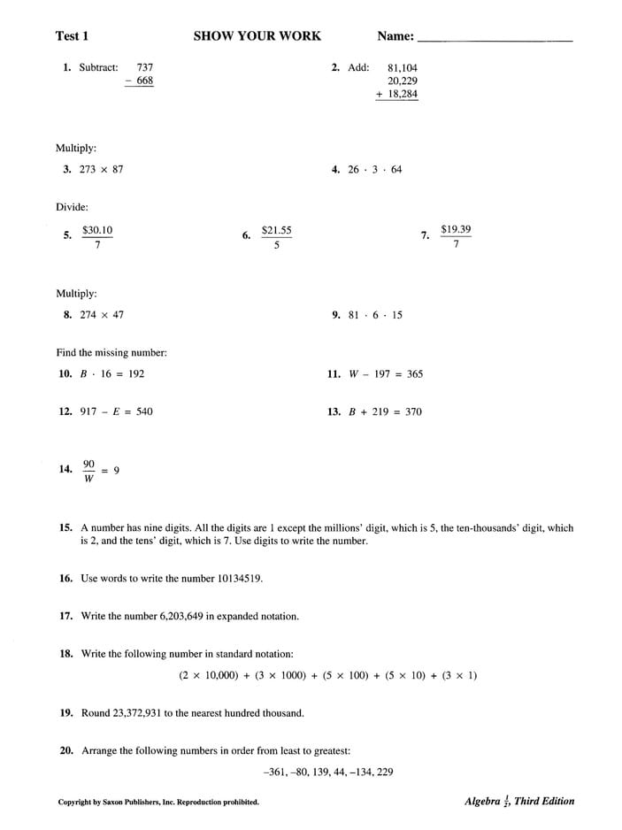 Saxon Placement Tests