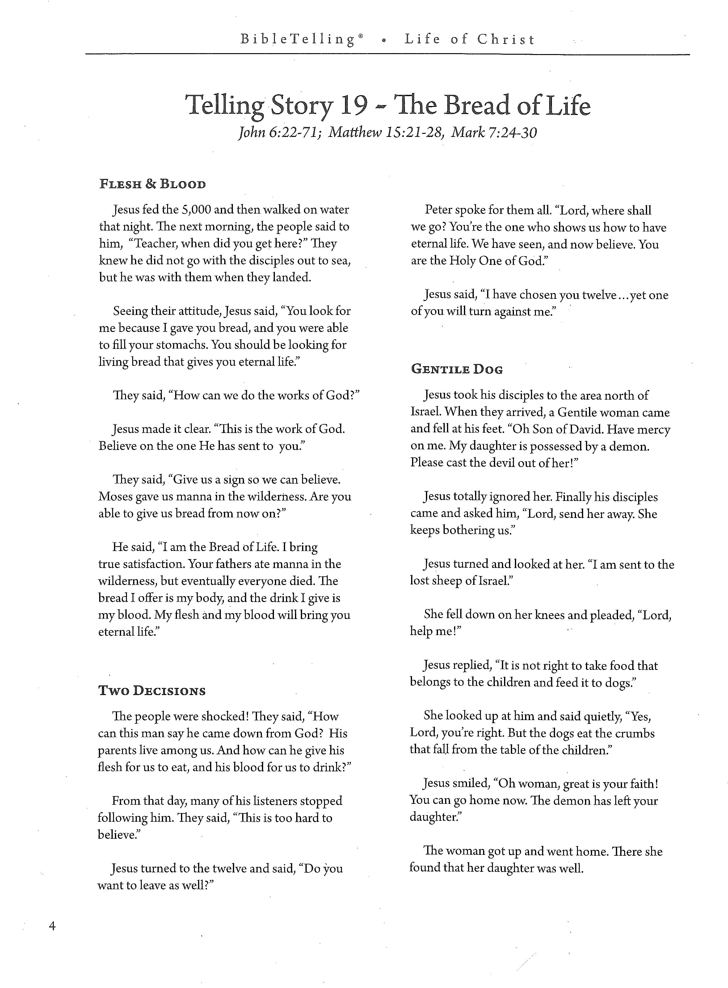 • BibleTelling Life of Christ is a one-year Bible course that equips people with the ability to learn the stories of Jesus, increase their knowledge of the Bible, and be able to tell it to others!