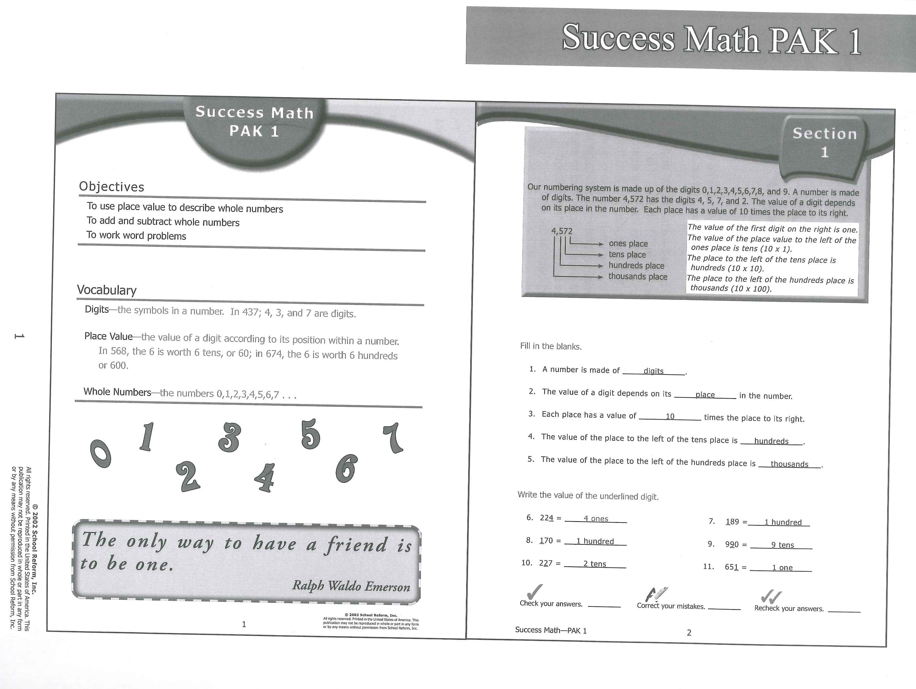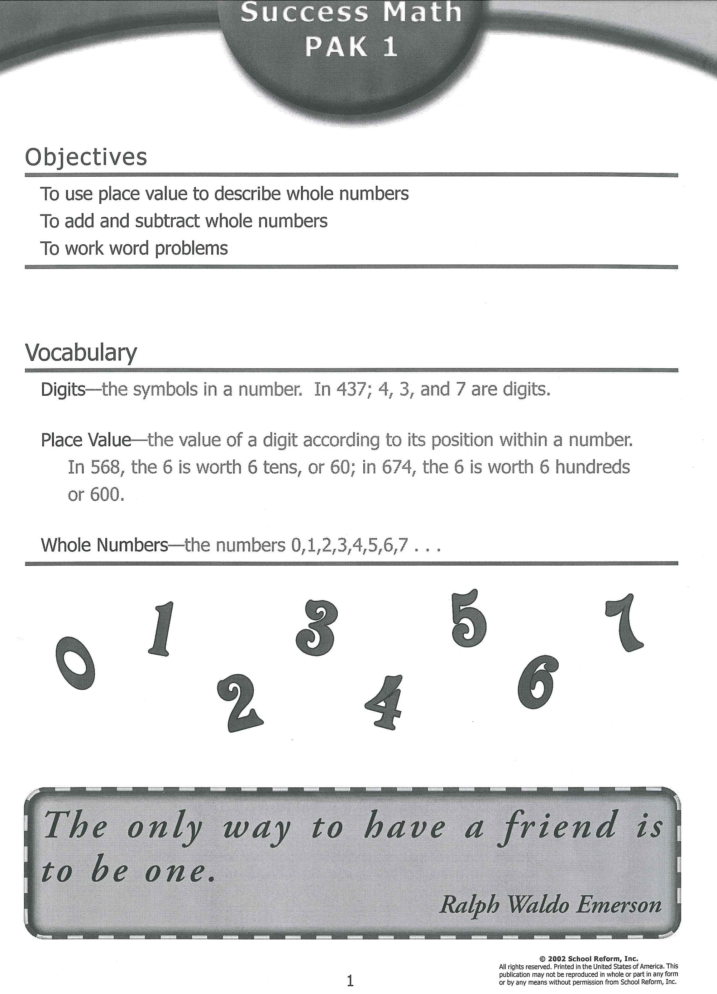 Bridgeway Math Foundations is the first book in a remedial math course written specifically to be used as a homeschool independent study course. No teacher’s guides, no extra work, no extra instruction needed. Instead, it provides step-by-step, easy-to-follow instructions for your students and plenty of practice to ensure they are really mastering each concept.