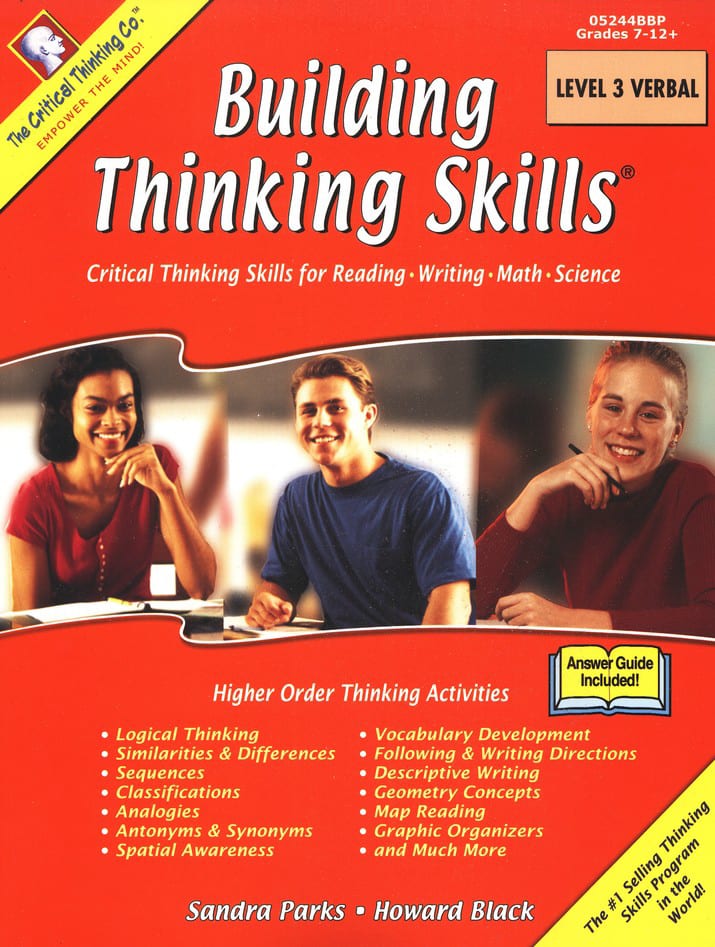 Sometimes children (and parents!) act without thinking or have trouble thinking through problems. Building Thinking Skills® Level 3 Verbal, Grades 7-12+ from The Critical Thinking Company provides highly effective verbal and nonverbal reasoning activities that improve: