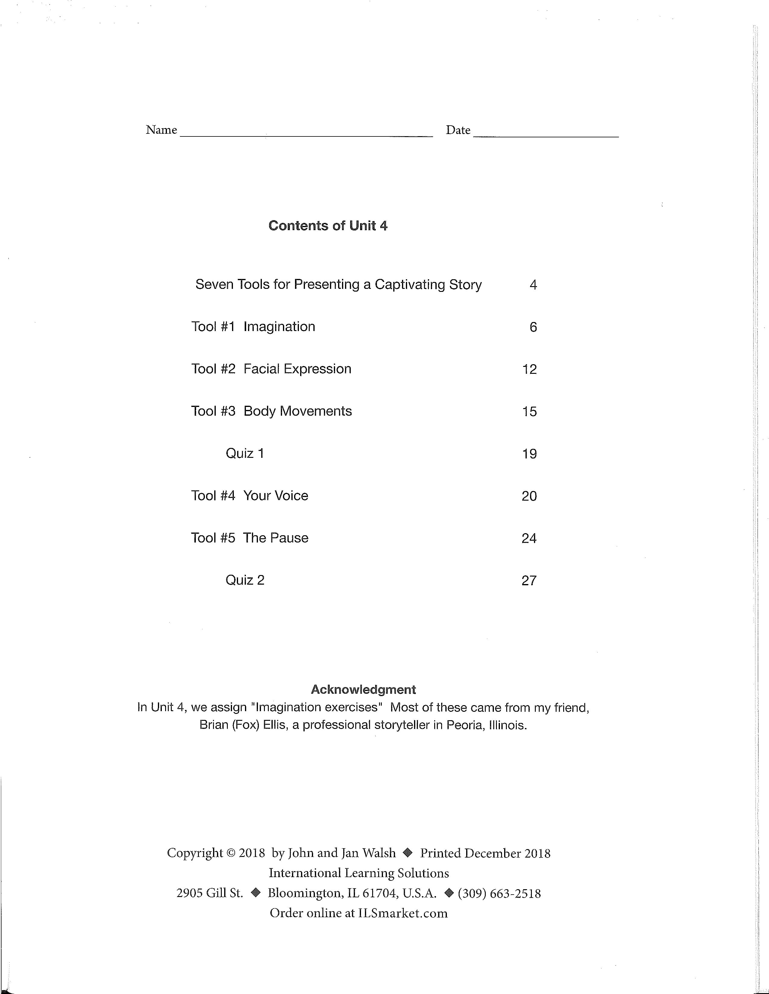 Creative Communication Skills Unit 4 teaches the first five presentation skills – imagination, facial expression, body movements, your voice, and the pause.