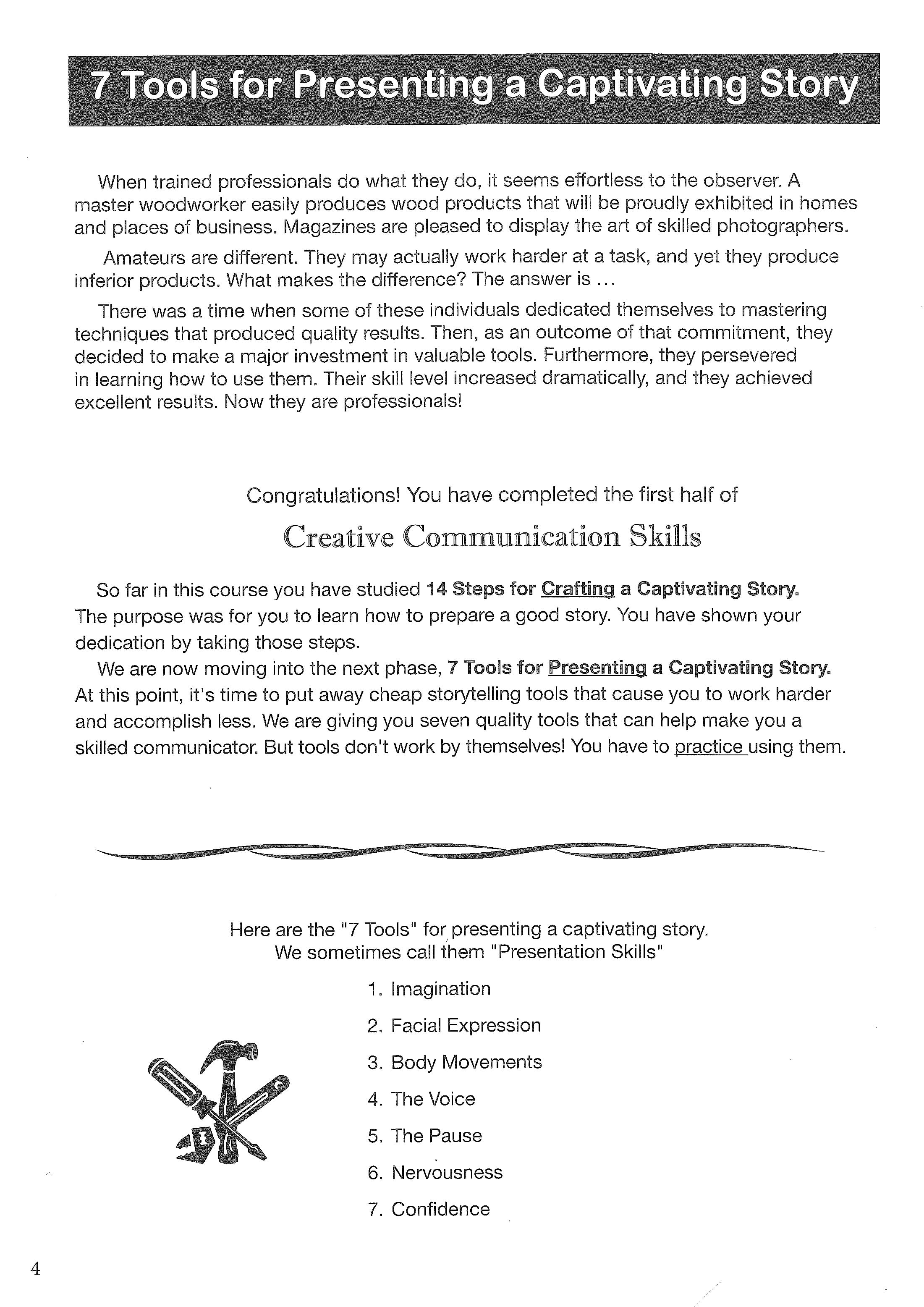 Creative Communication Skills workbooks include the text of the material presented as well as study questions and quizzes. A separate textbook is not needed. In addition to the written material, links are provided to additional resources and online videos that illustrate the concepts being taught in the workbooks.