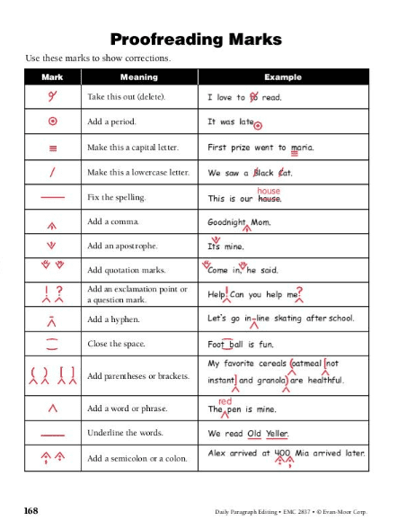 • Page of reproducible proofreading marks