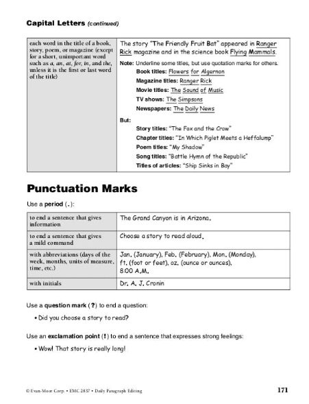 Included in Daily Paragraph Editing Grade 4 from Evan-Moor are grade-appropriate grammar and mechanic skills that will make your student excel in the world of writing.