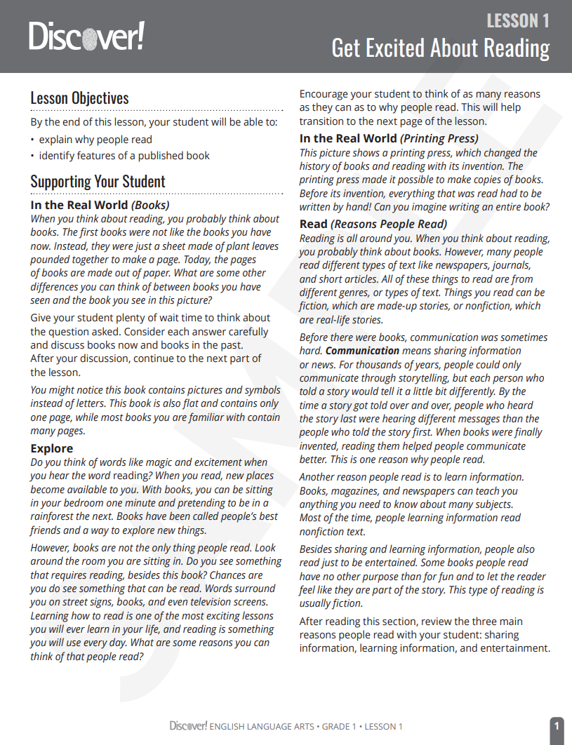 Discover! ELA 1st Grade Complete Curriculum Bundle