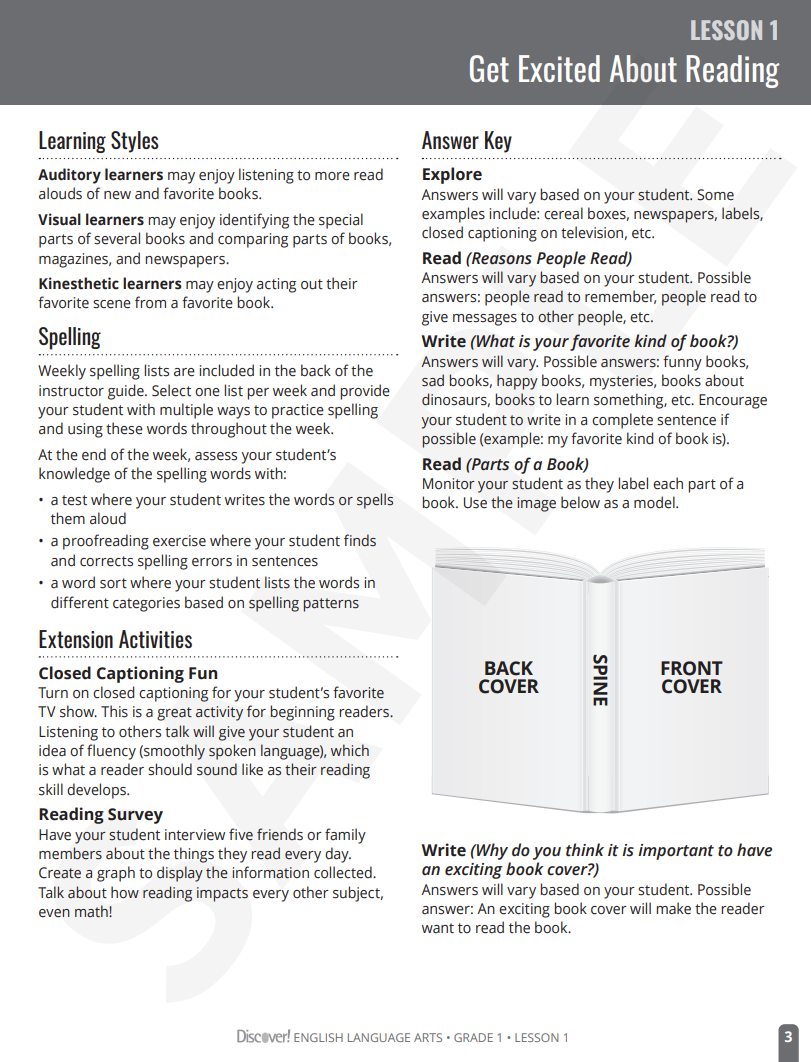 Includes Student Worktext A (phonics, reading), Worktext B (writing, fluency), Instructor Guide, and Assessment Booklet. Aligned to various learning styles, the set helps students apply ELA skills in real-world contexts.
