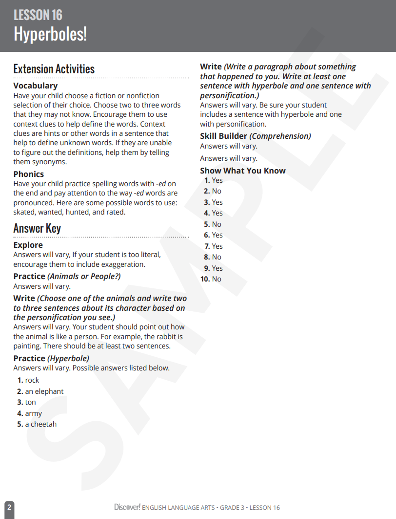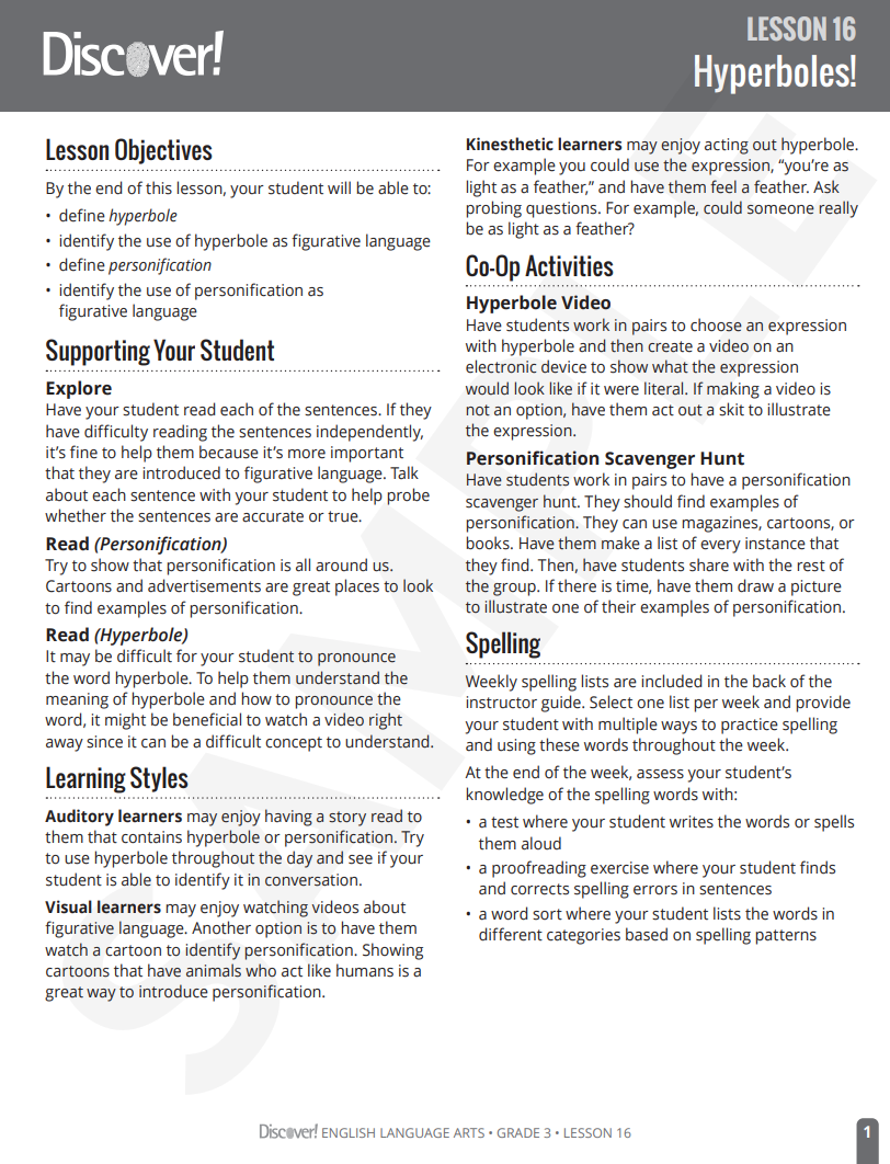 Click here for Teacher Guide Sample.