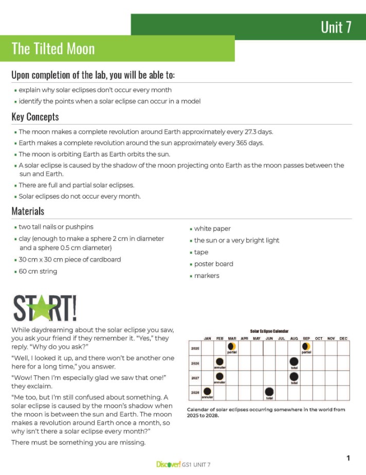 The Discover! General Science 1 lab book is a hands-on resource designed to deepen students’ understanding of scientific concepts and procedures. Each unit features at least one engaging lab activity, with instructor support for all labs provided in the accompanying instructor guide.