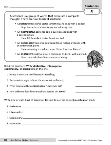 • Declarative, interrogative, exclamatory, & imperative sentences