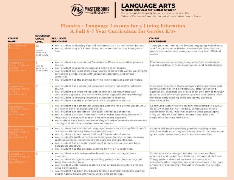 Master Books’ beautiful language arts curriculum, Language Lessons for a Living Education Level 4, helps fourth grade level students master writing strong and descriptive paragraphs. They will learn story elements, the eight parts of speech, letter writing, and much more!