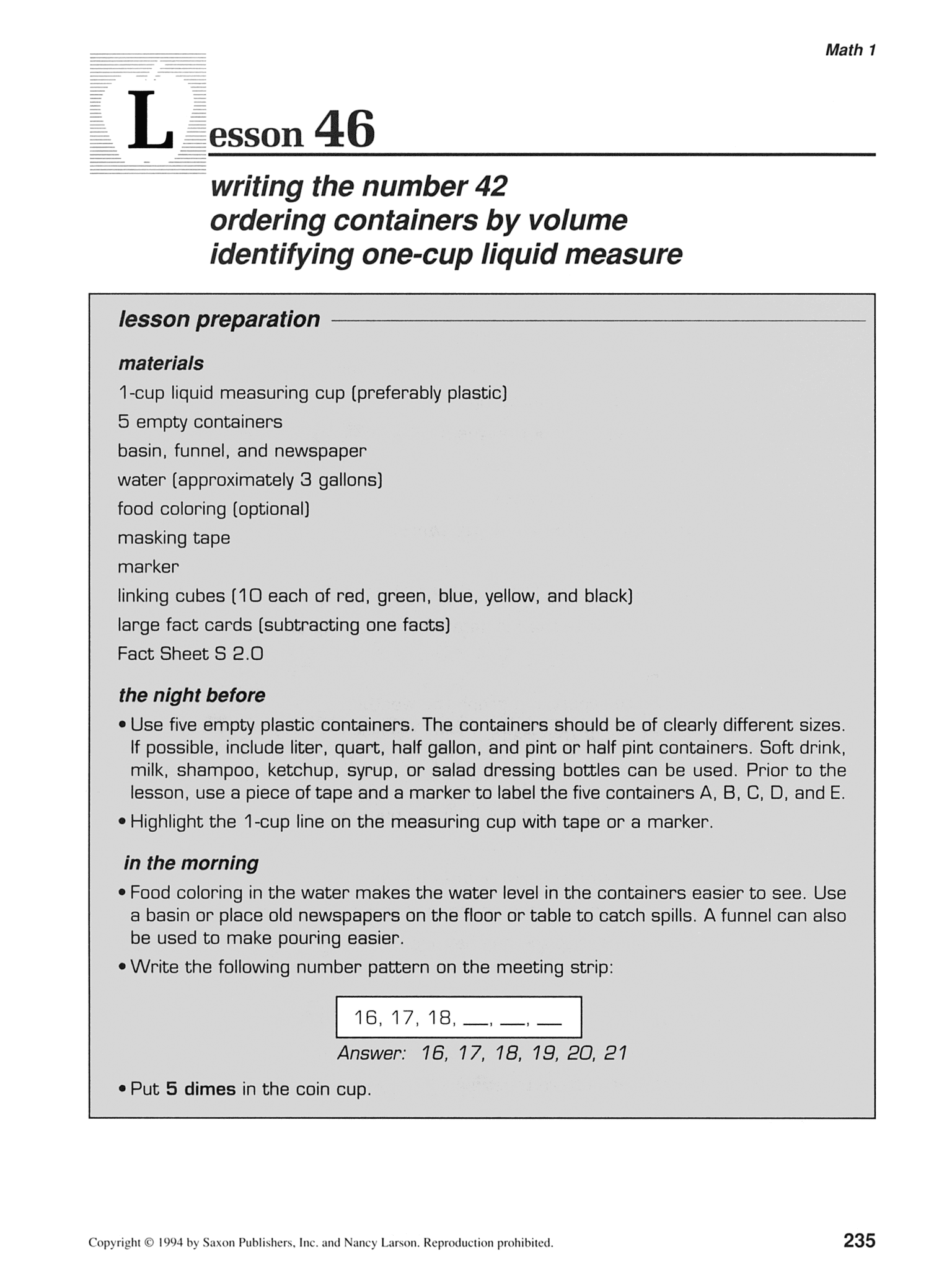 Throughout the program the student connects math to everyday life.