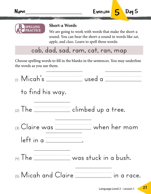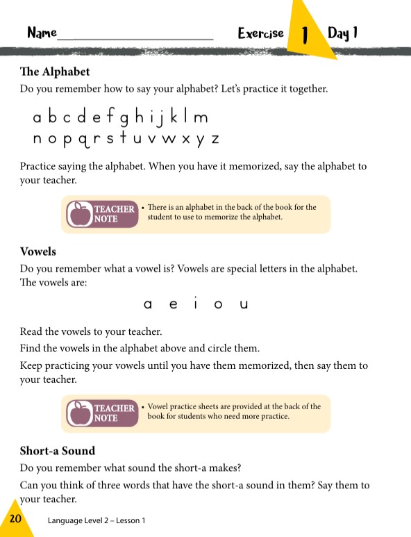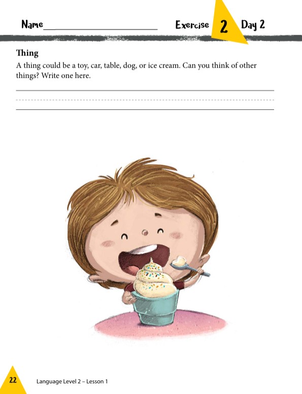 Level 2 focuses on developing early reading and narration skills. Your student will start forming basic sentences utilizing phonics, observation, and reading comprehension. By the end of the course, students should be able to comfortably write up to three sentences at a time.