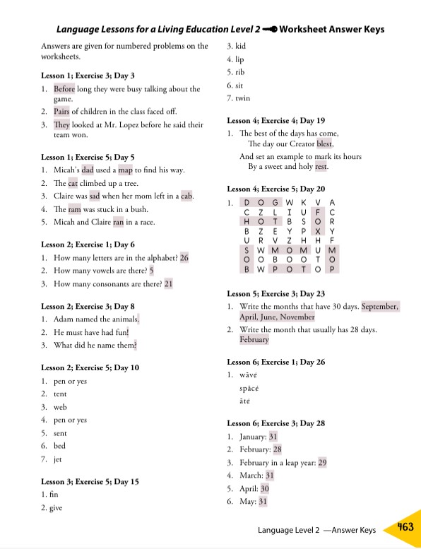 Each quarter has five stories, two picture studies (one of which is Bible-based) and two poems (one of which is a Psalm.) Using the spelling words and the dictionary worksheets, students will create their own dictionary as they move week by week through the material.