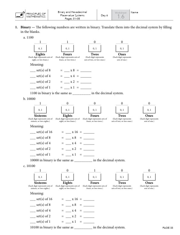In Principles of Mathematics Book 1 your student will: